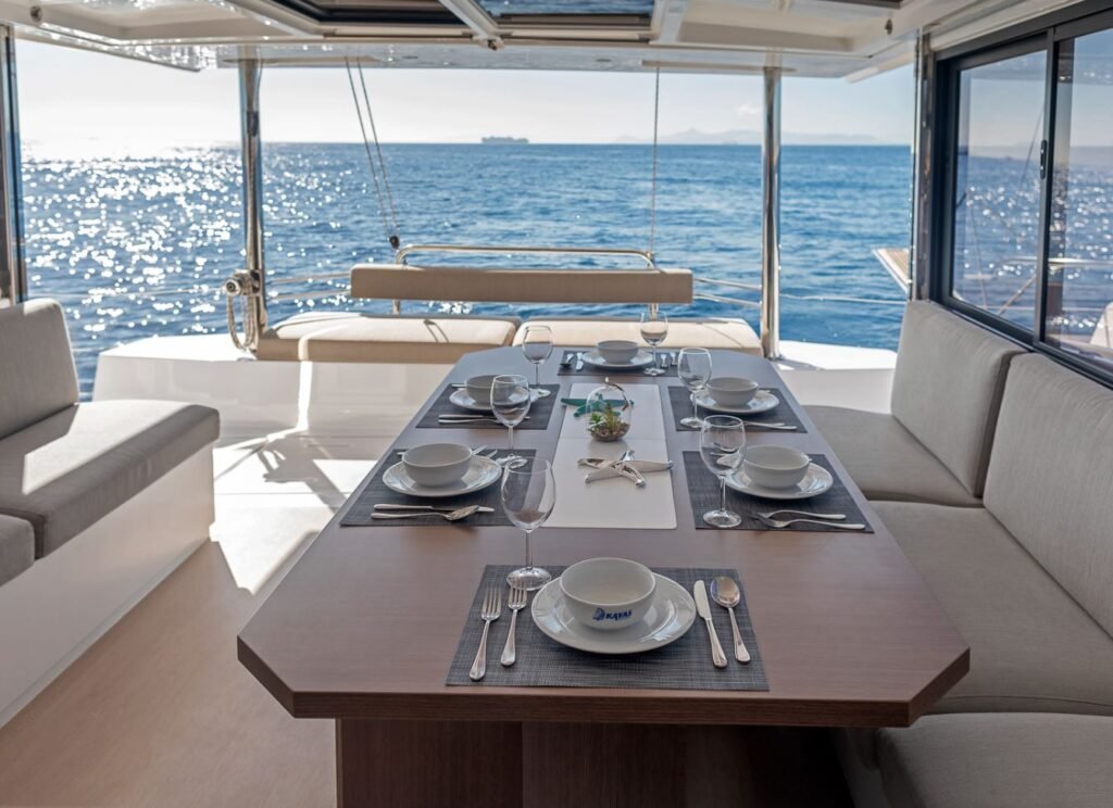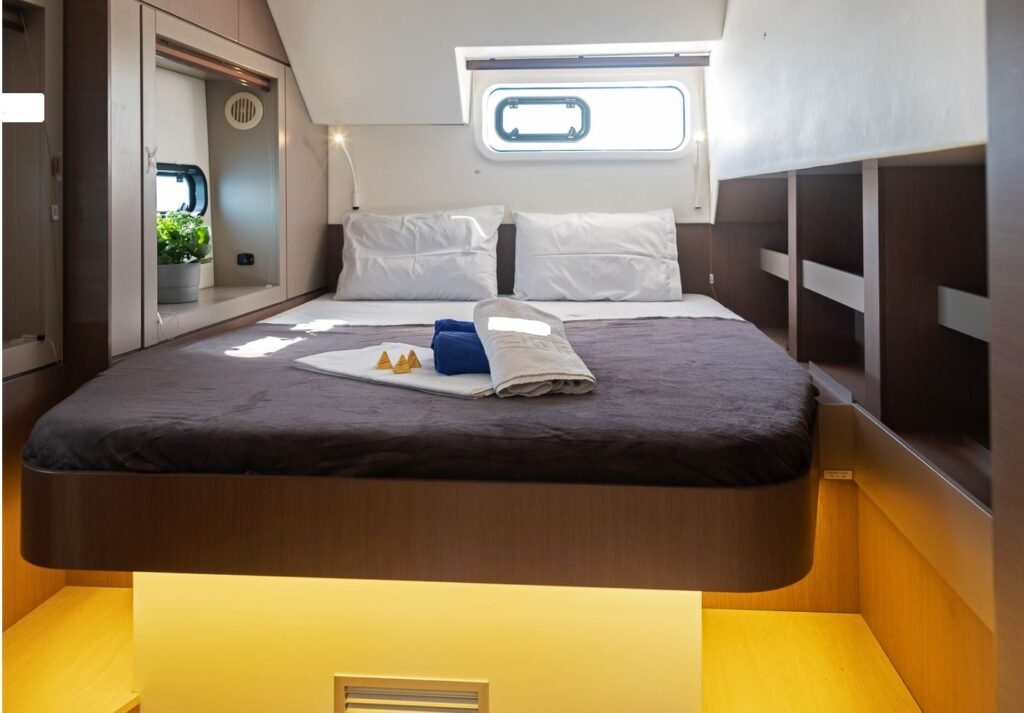 Schon beim Betreten spürt man den Unterschied: helle Kabinen, weite Panoramafenster und ein offenes Raumkonzept, das Freiheit neu definiert. Ob beim Frühstück mit Blick auf die Wellen, beim Sonnenuntergang auf dem Vordeck oder bei einem Glas Wein im Salon – unsere Katamarane verbinden die Leichtigkeit des Segelns mit dem Komfort einer stilvollen Unterkunft.